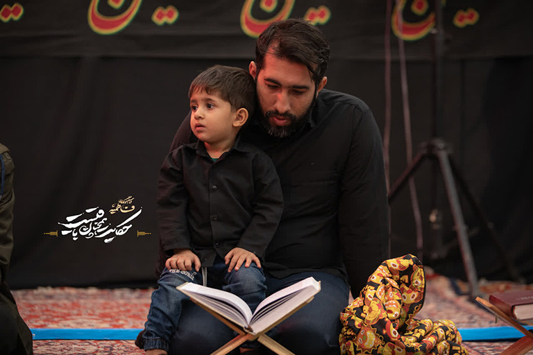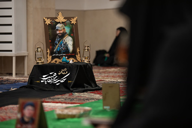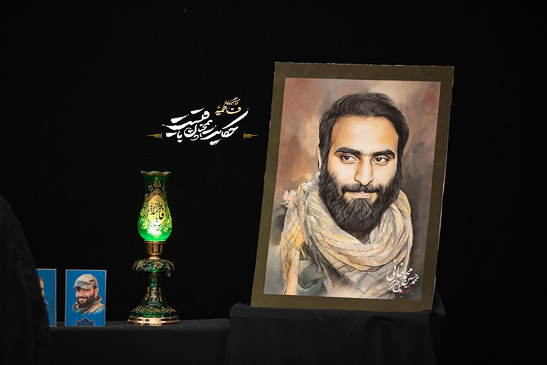 نام و یاد شهید «محمدحسین محمدخانی» زینت بخش این مراسم بود. شهید محمدخانی در نهمین روز از تیرماه ۱۳۶۴ در خانوادهای مؤمن و رزمنده چشم به جهان گشود. پدرش از مجاهدان ۸ سال دفاع مقدس بود. محمدحسین چند ماهه بود که عمویش، «ولیالله محمدخانی» و سه ساله بود که داییاش، «سردار ساعتیان» به شهادت رسیدند. به همین خاطر حال و هوای خانه محمدخانی از همان سالها با جنگ و جهاد و شهادت آمیخته بود. او کاردانی رشته عمران را در دانشگاه یزد گرفت. با پرچم و کتیبههای «یا حسین» و «یا اباالفضل»، خانه کوچک دانشجویی را تبدیل به حسینیه کرد. بعد از مدتی با دوستان دانشجوی خود هیئت «علمدار حسین(ع)» را پایهگذاری کردند که برنامههایش در خانه خودش برگزار میشد. محمدخانی دورههای چند ماهه سپاه را در اصفهان گذراند و مدتی هم در دانشکده امام علی(علیهالسلام) آموزش دید. تا اینکه موضوع سوریه و اعزام برای دفاع از حرم و جبهه مقاومت پیش آمد. طبق مأموریت تعریف شده، ابتدا به عراق اعزام شد و پس از چند ماه، راهی سوریه شد. صبح ۱۶ آبان سال ۱۳۹۴ در عملیات محرم برای آزادسازی حلب، ترکش به پشت سرش اصابت کرد و به شهادت رسد.