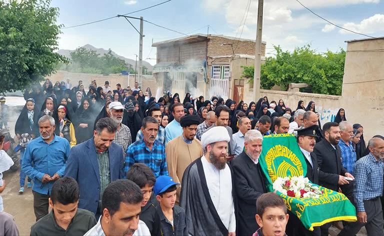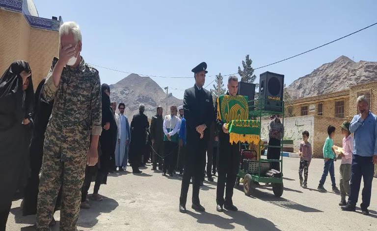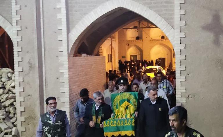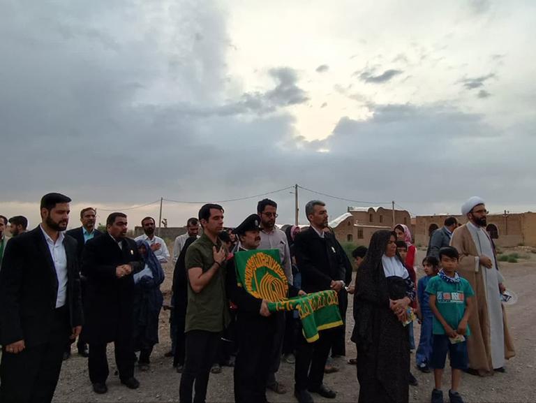 اهالی کاروان زیر سایه خورشید بر سر تربت شهدا و امام جمعه فقید میبد حاضر شدند