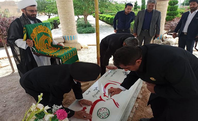 گروهی از خدام آستان شهید توس، با حضور در حسینیه امیرچقماق یزد به مقام شامخ شهیدان گمنام ادای احترام کردند و مردم حاضر در این گلزار را نیز به فیض زیارت از راهدور بردند. -