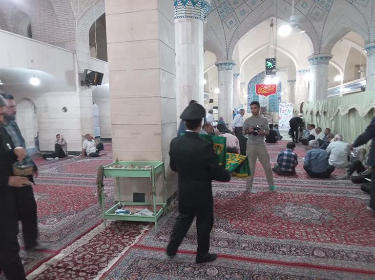 کاروان خدام رضوی در ساعات اولیه ورود خود به یزد، در مراسم معنوی که در مسجد جامع کبیر یزد برپا شد حضور یافتند. -
