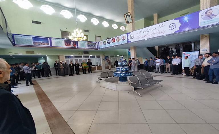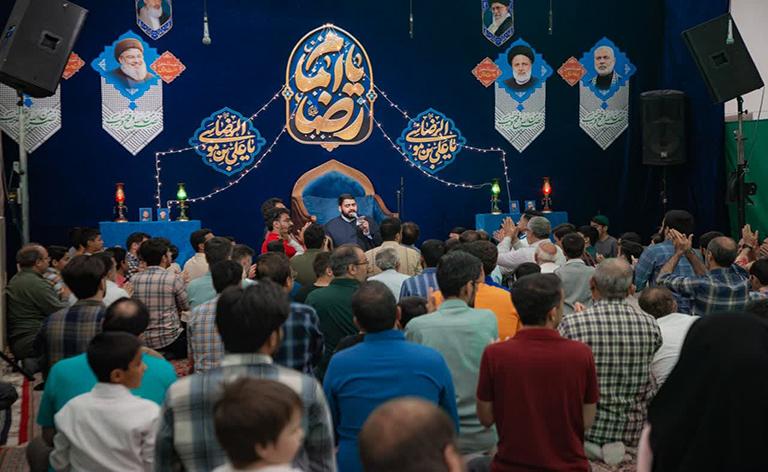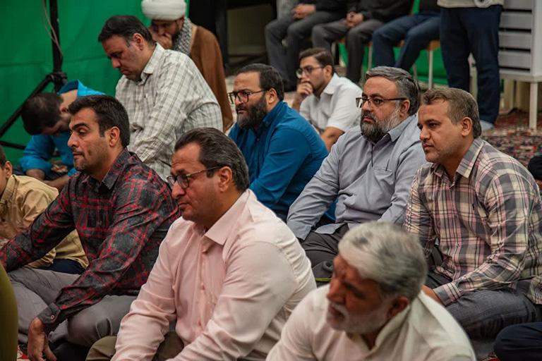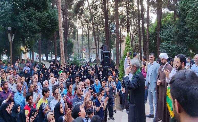 خدام بارگاه ملکوتی ابالحسن الرضا(علیهالسلام) در آخرین دیدار مردمی در استان یزد، سهشنبه اول خردادماه، در محفل زیر سایه خورشیدیها در سوگ شهدای خدمت حضور یافتند. -